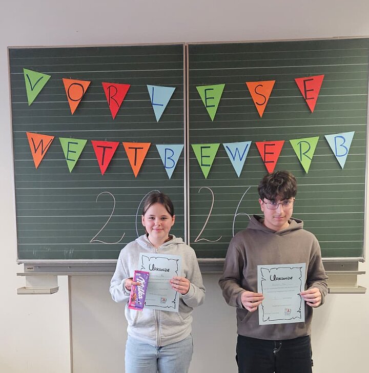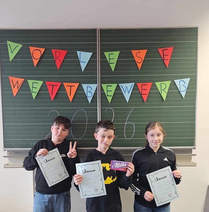 Am 12.3.2026 fand an unserer Schule der interne Vorlesewettbewerb für die Klassen 5 bis 7 statt. Aus jeder Jahrgangsstufe durften drei ausgewählte Schülerinnen und Schüler teilnehmen. Zunächst mussten sie eine vorbereitete Textstelle aus einem selbst gewählten Buch vorlesen. Anschließend durften sie ihr Können beim Vorlesen eines unbekannten Textest zeigen.